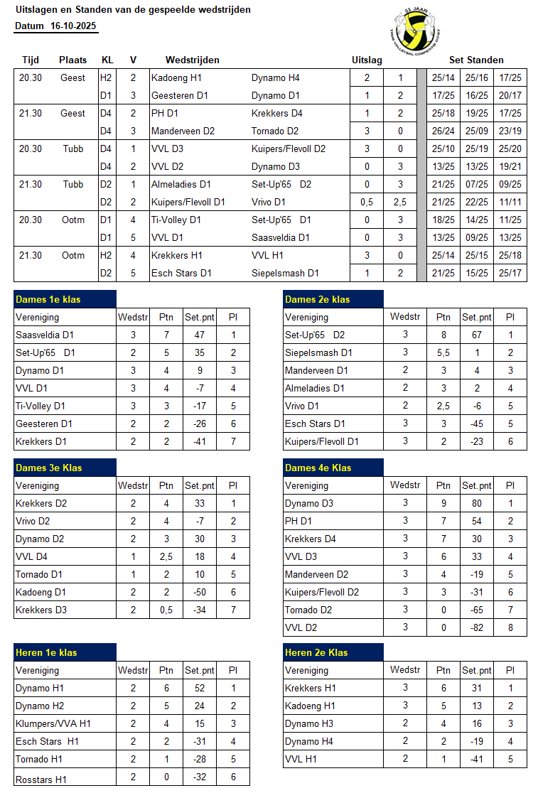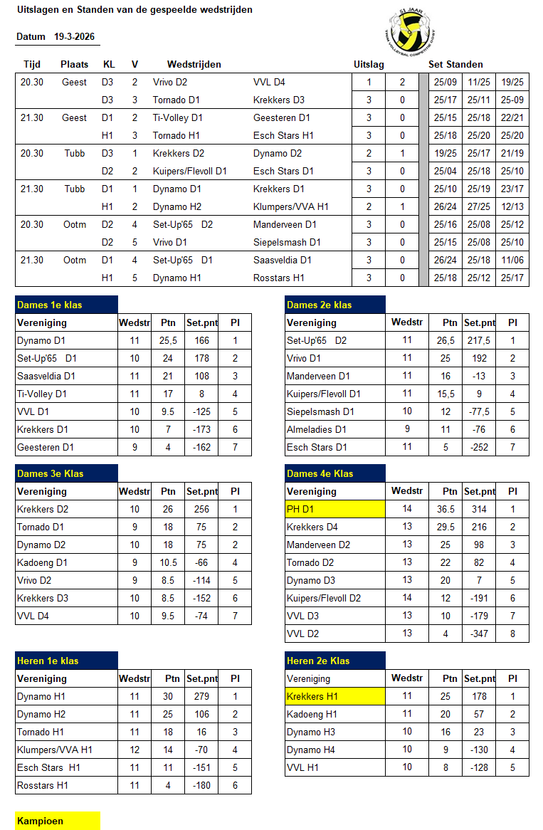 Uitslagen trimcompetitie