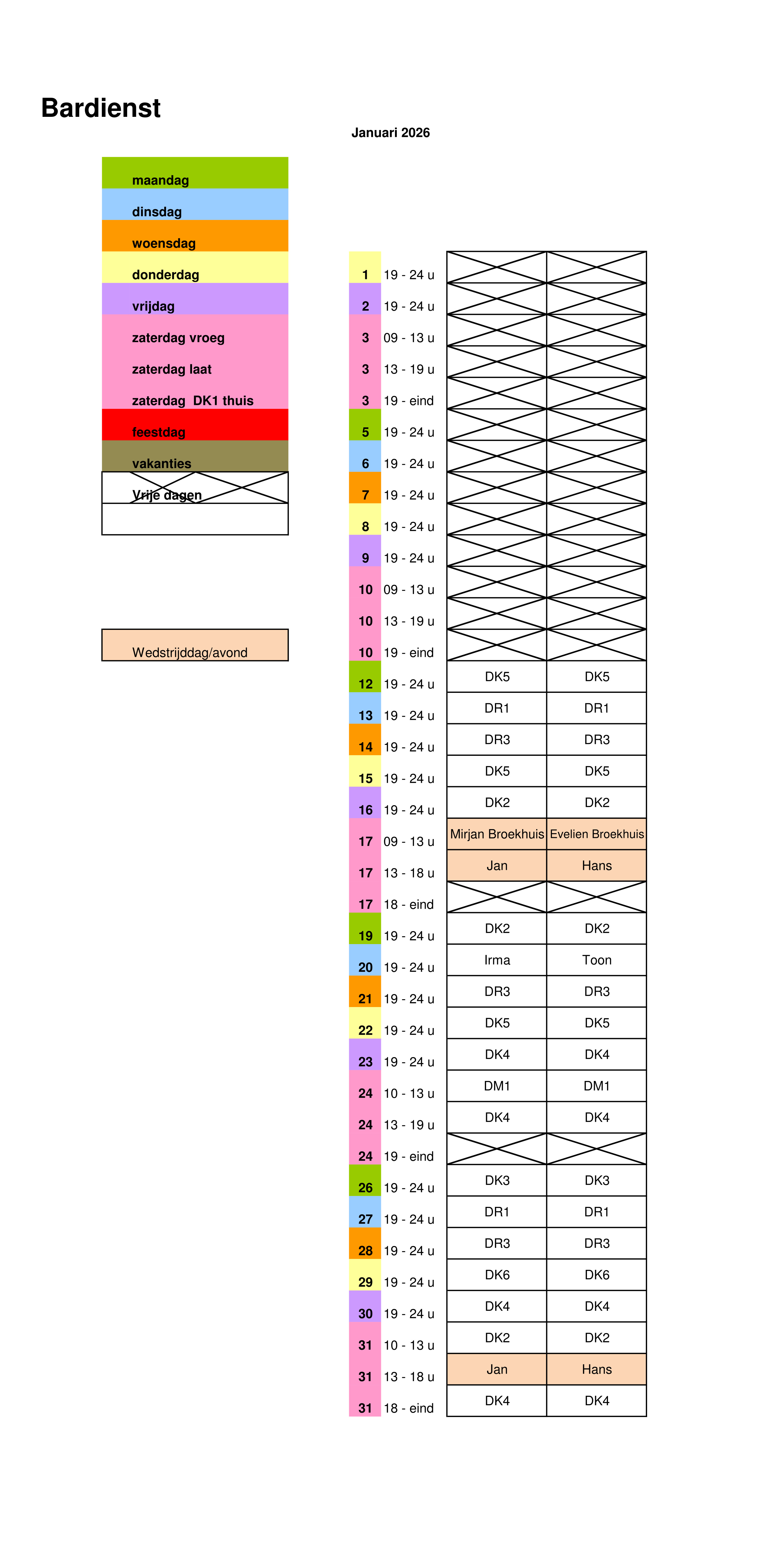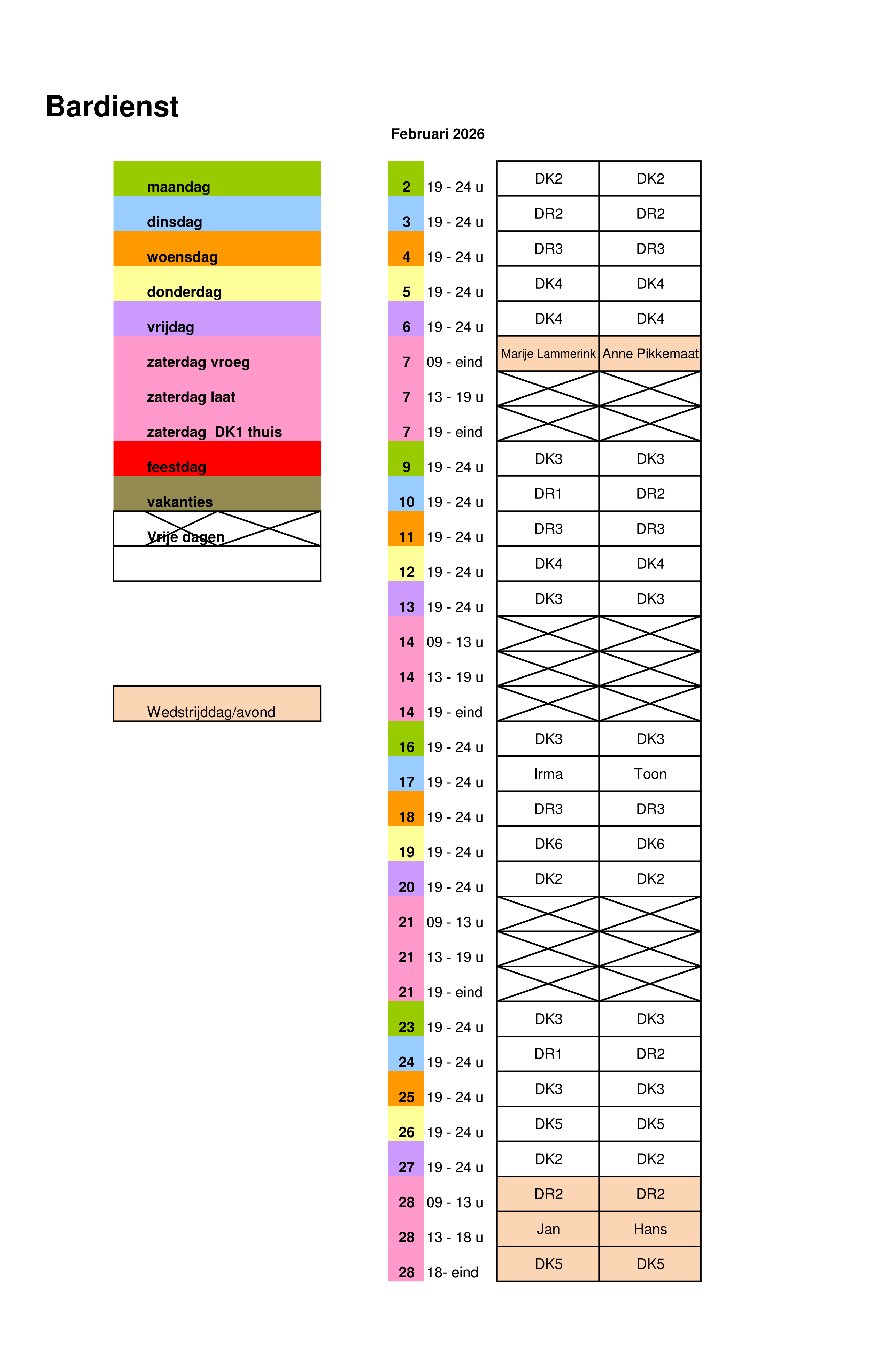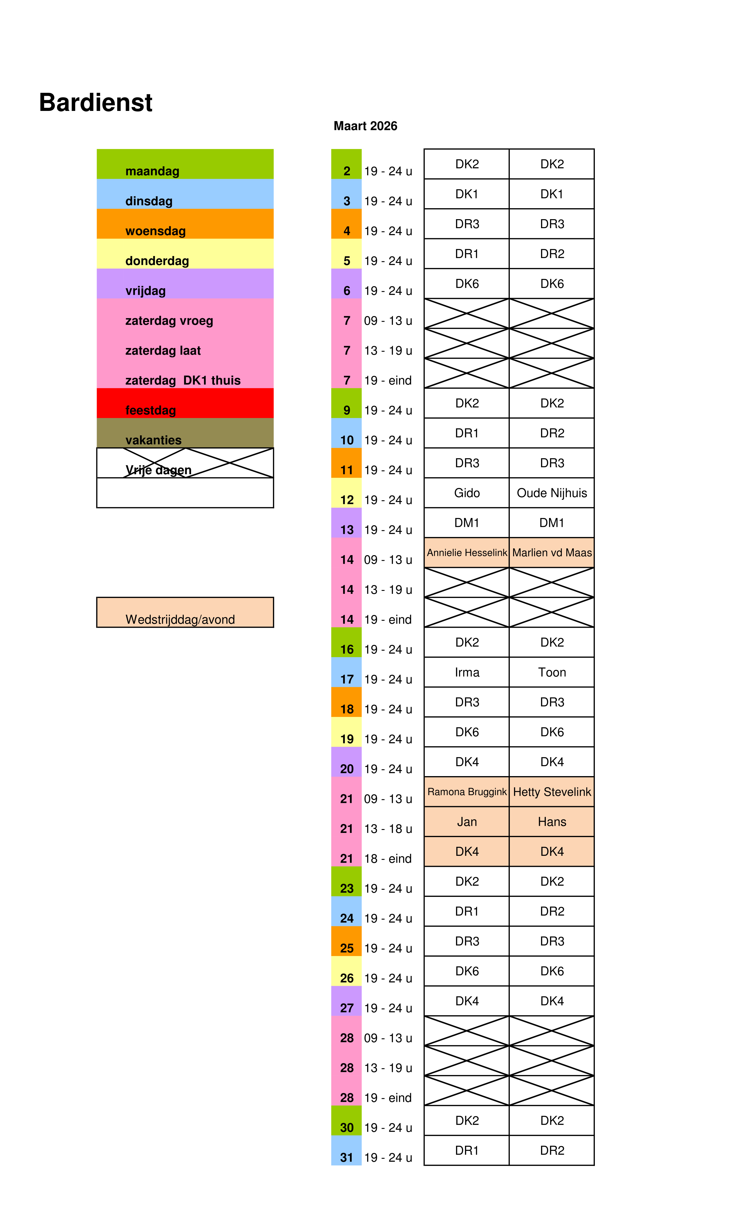 Onderstaand het schema van de bardienst 2e helft seizoen 2025-2026: