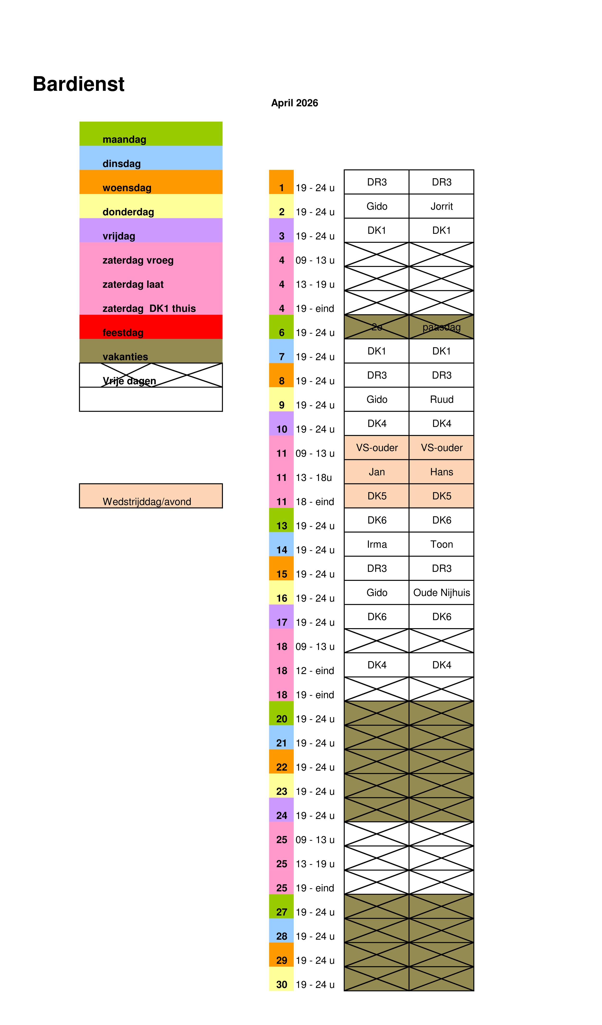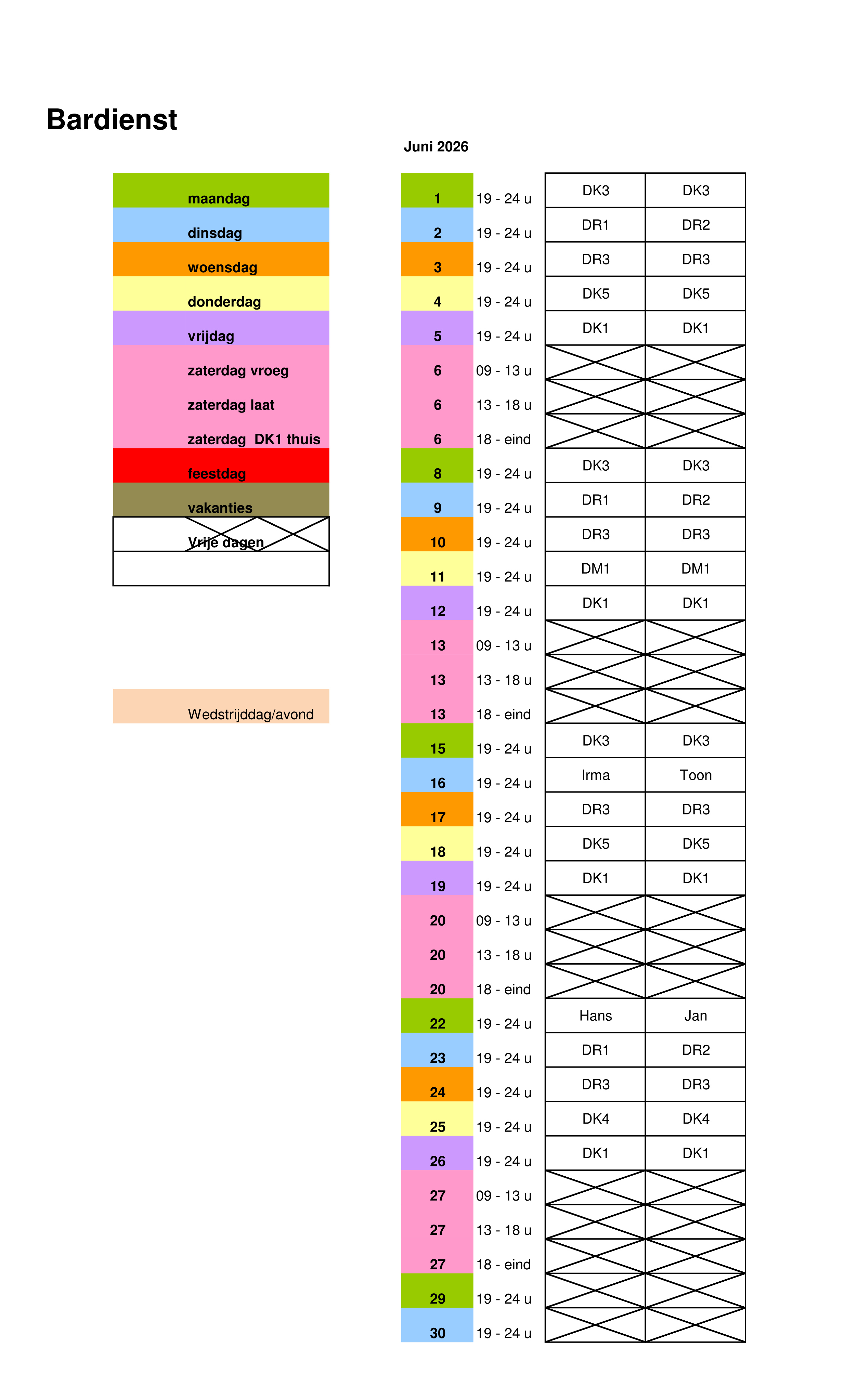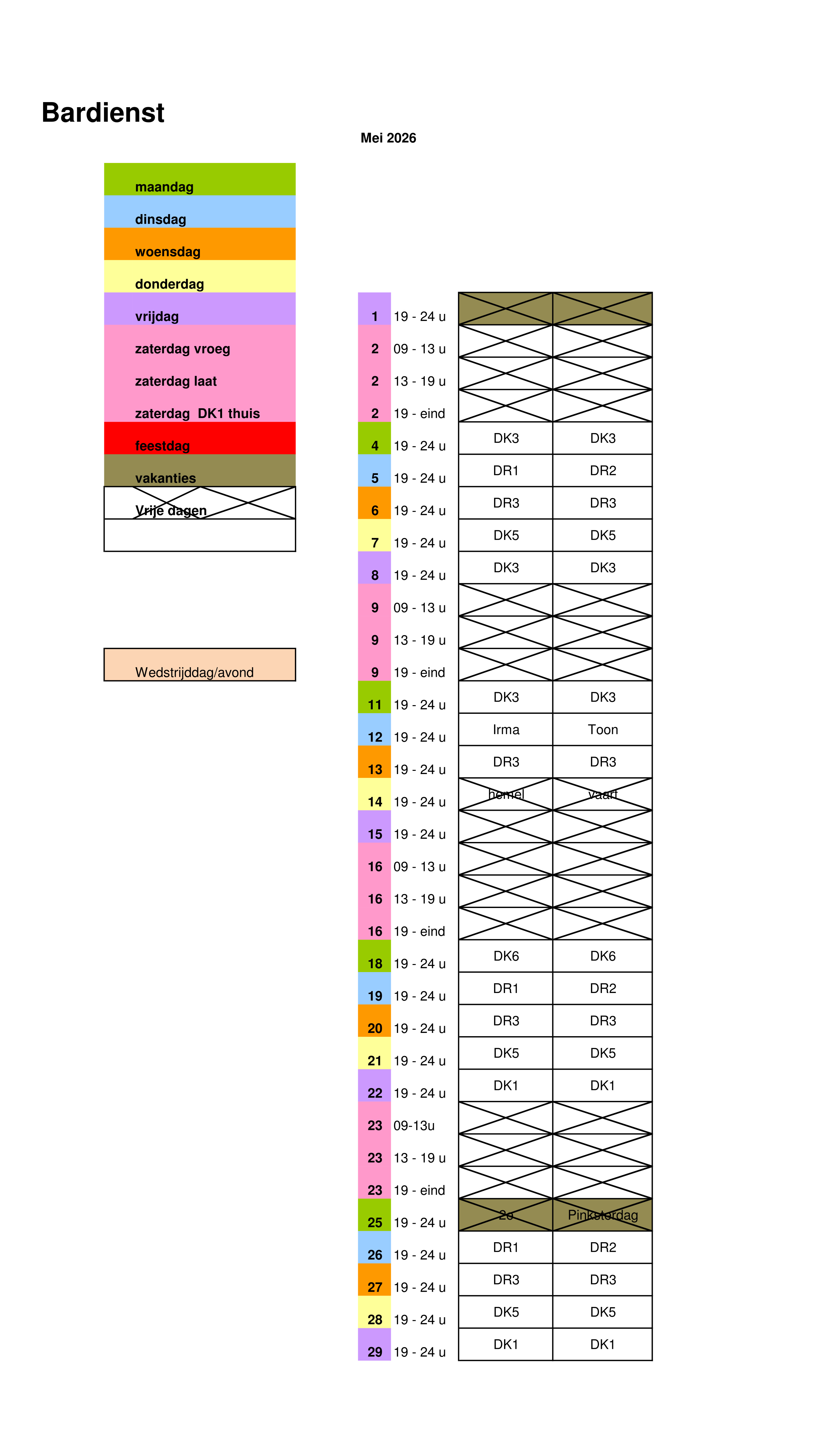 Onderstaand het schema van de bardienst 2e helft seizoen 2025-2026: