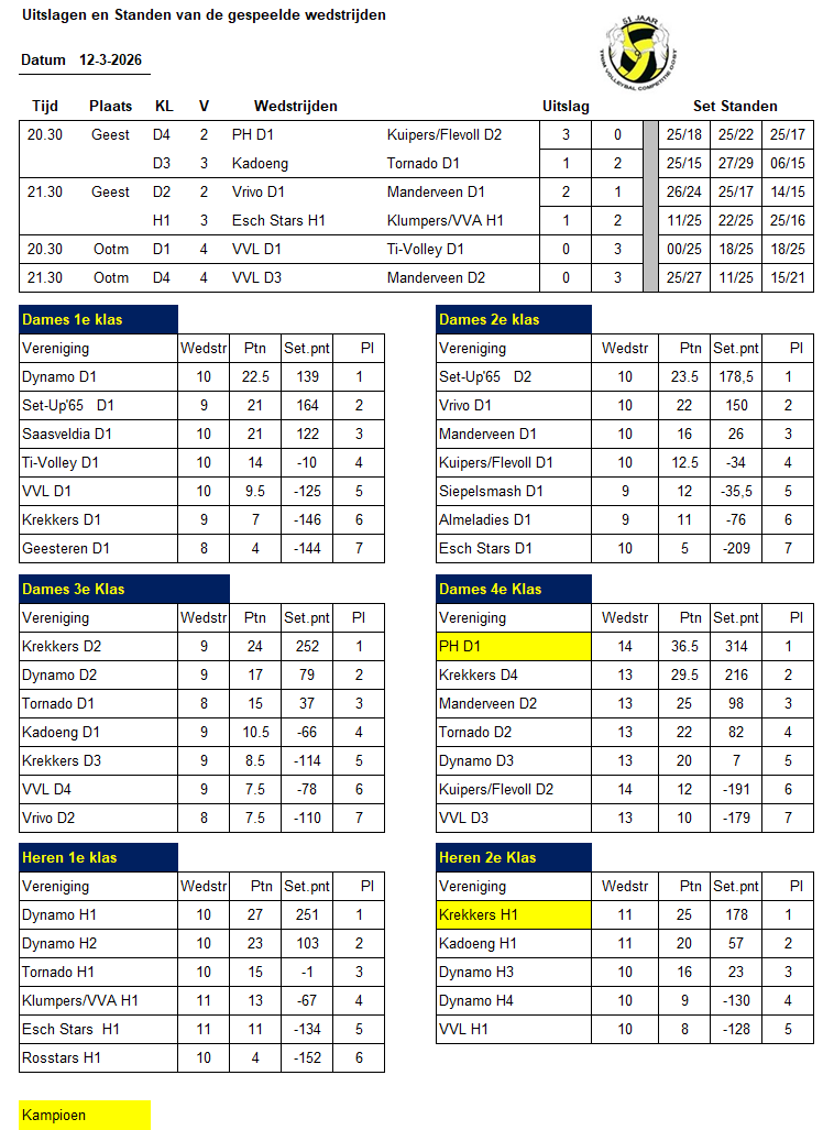 Uitslagen trimcompetitie